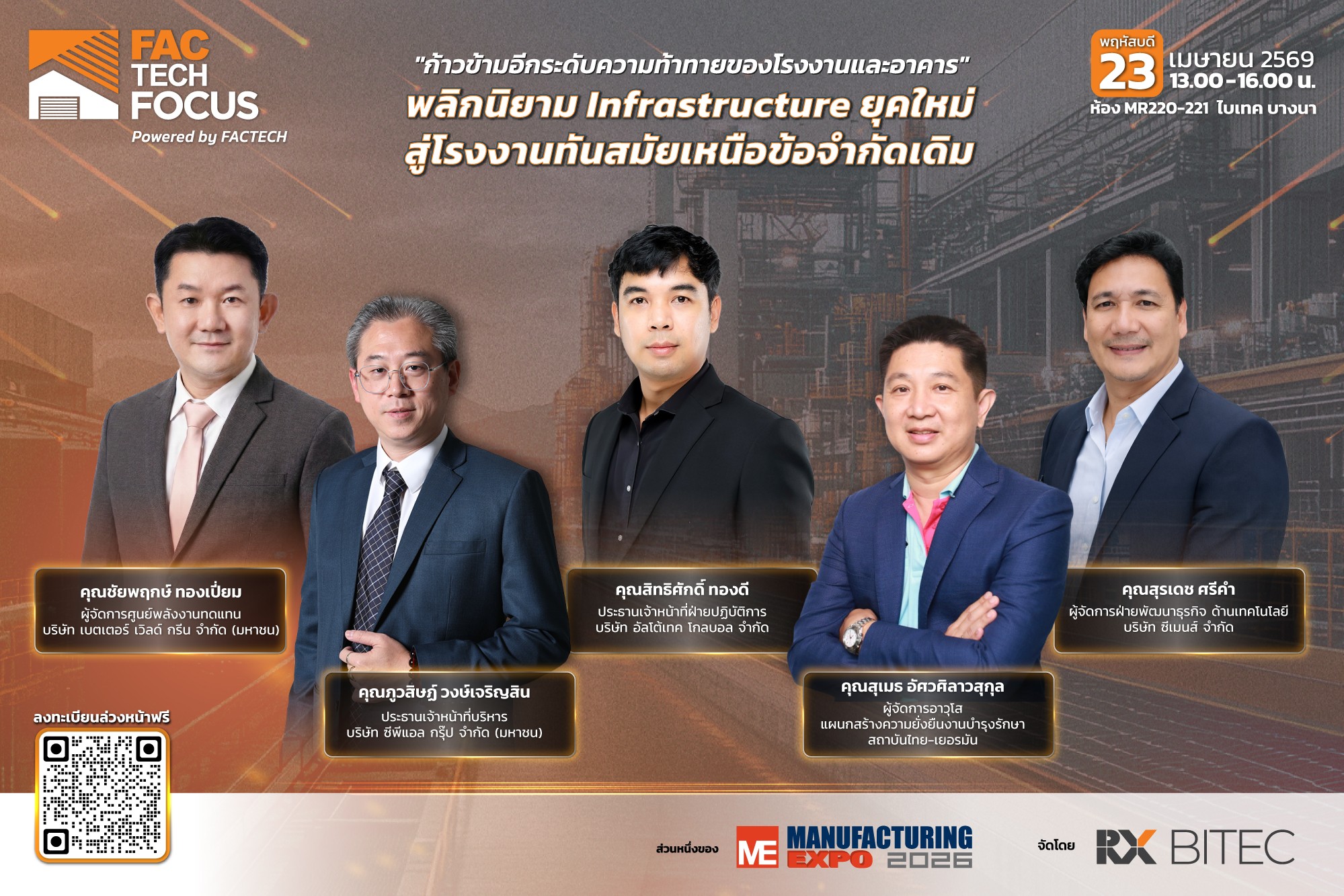 • FacTech Forum: “พลิกนิยาม Infrastructure ยุคใหม่ สู่โรงงานทันสมัยเหนือข้อจำกัดเดิม” – หากคุณอยู่ในแวดวงการจัดการโรงงานและอาคาร หรือผู้ประกอบการ ต้องไม่พลาดมาอัปเดตเทรนด์ แลกเปลี่ยนความรู้ และพัฒนาโรงงานด้วยโซลูชันจริง ห้อง MR 220 – 221 สำรองที่นั่งได้ที่ https://registration.eventpassinsight.co/…/menep/visitor